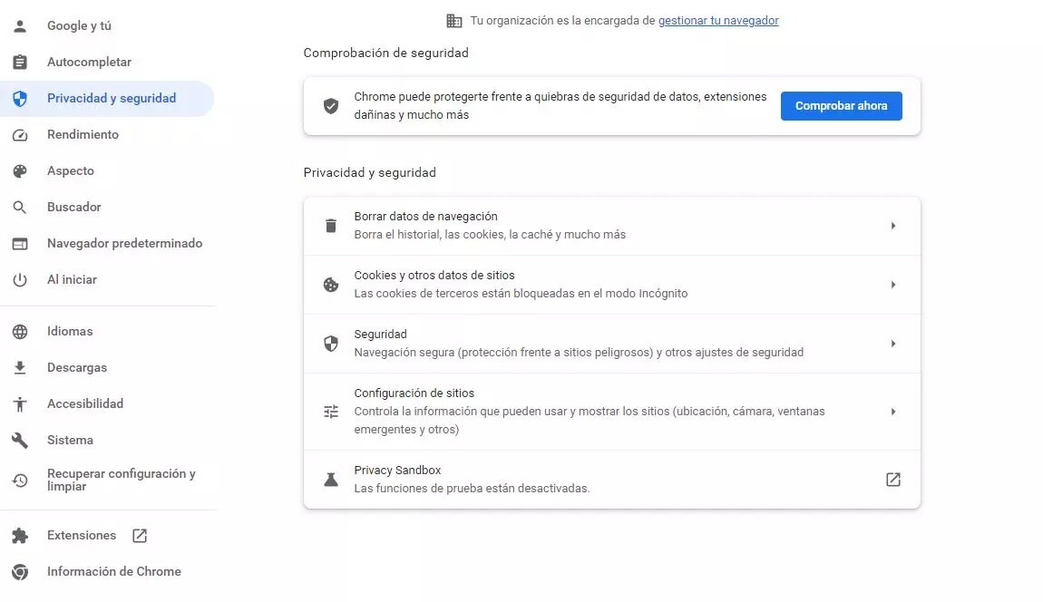 Abrimos la sección o apartado “Privacidad y seguridad”.