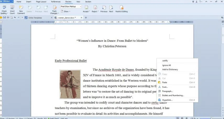 Now there are some downsides. It may not happen to you, but FreeOffice tends to hang. And it isn't 100% free. If you don't pay, its applications are very limited. For example you cannot use dictionaries or work in full screen mode.