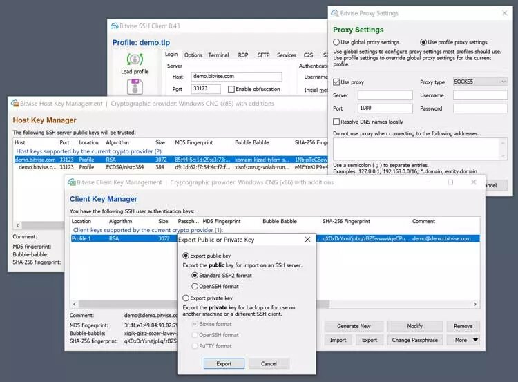 Bitvise SSH Client, with advanced functions to establish secure connections