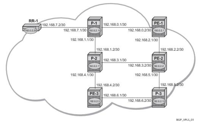 Note that BGP based VPLS is a method only for VPLS tunnel label exchange, it does not deal with delivery of traffic between VPLS tunnel endpoints, so general MPLS frame delivery between tunnel endpoints must be ensured as discussed in MPLSVPLS.