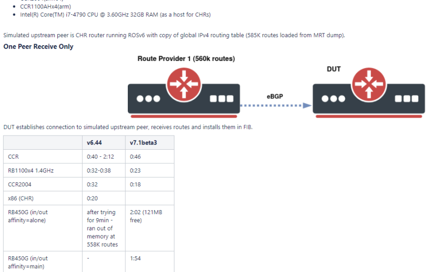 Considering all the work that’s being done to improve full table convergence time on ROSv7, this change is a step in the right direction to allow MikroTik to compete with larger network vendors in the area of peering and transit.