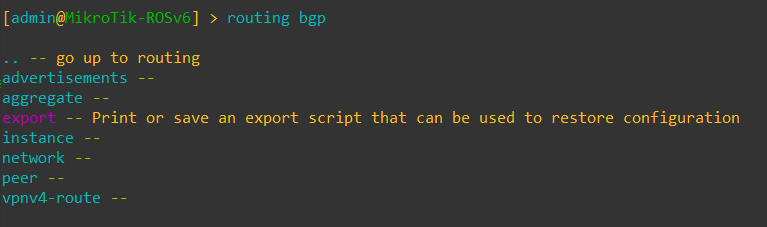 BGP command options in ROSv7