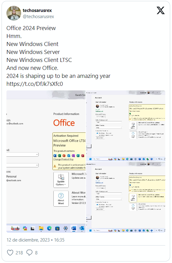 In the screenshot you can read that the Preview version of Microsoft Office 2024 is being used, which does not require a subscription, but does require a product key and its corresponding activation. The only thing that leaves a window open for despair is seeing that the photo indicates that it is the LTSC version, so, in this specific case, it would not be available to all users. But it is believed that, if this edition of Office 2024 exists, there will also be the version that the majority of computer users with the Windows system can use.