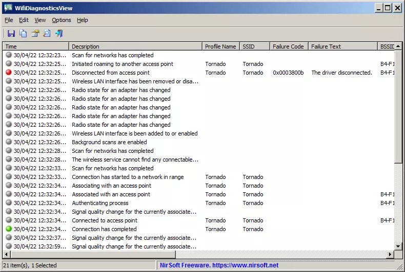 As you can see, this program for PC is very useful, but it has a drawback. Which is it? Even though it offers you detailed information to find the problem with the WiFi, it does not execute solutions to fix the connection. It will directly enter the error code related to each of the events that have an incident and you will have to find the solution on your own.