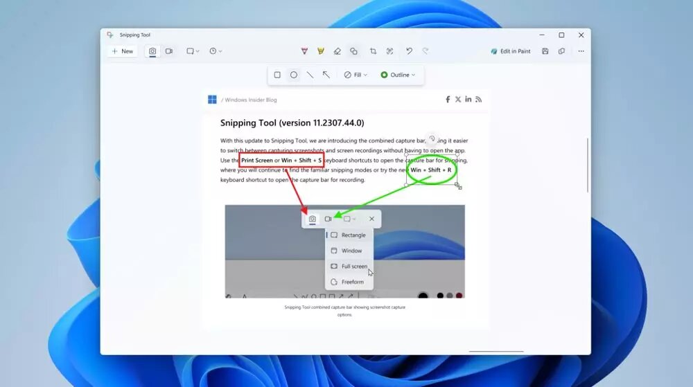 Along with this new feature in Notepad, the update has also added a change to the Snipping tool. Thanks to this, users now have the ability to add different shapes to the documents they are interacting with, whether they are circles, squares, lines, arrows and many other options.