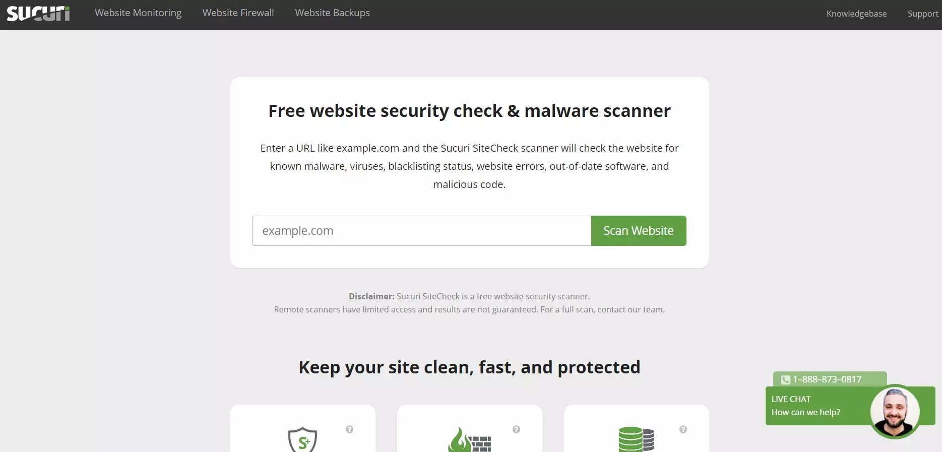 One of the options we have is Sucuri. It uses different antivirus databases and online tools to analyze files. It shows us if a specific URL can be dangerous and is responsible for analyzing the content.
