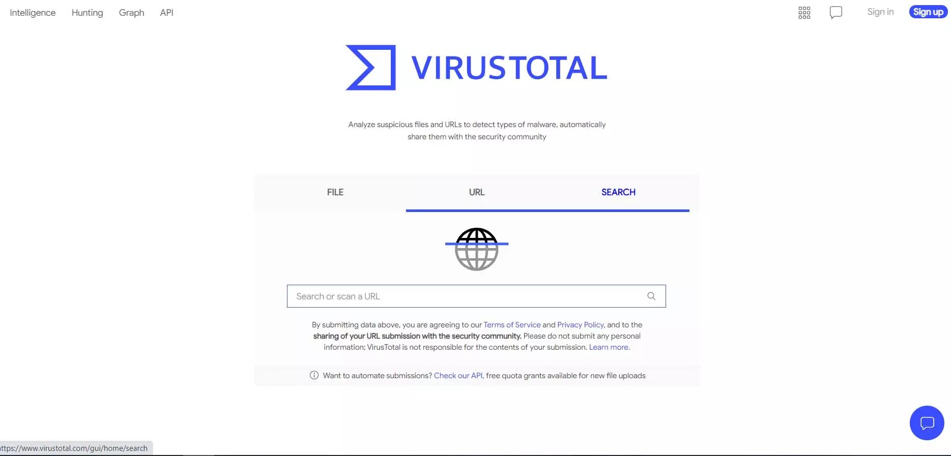 But Sucuri is not the only alternative we have, far from it. Another very popular one is Virus Total. Its operation is very simple and similar to the previous one, but it has a peculiarity: we can also analyze downloaded files. We just have to paste the URL that interests us or upload the document we want to analyze.
