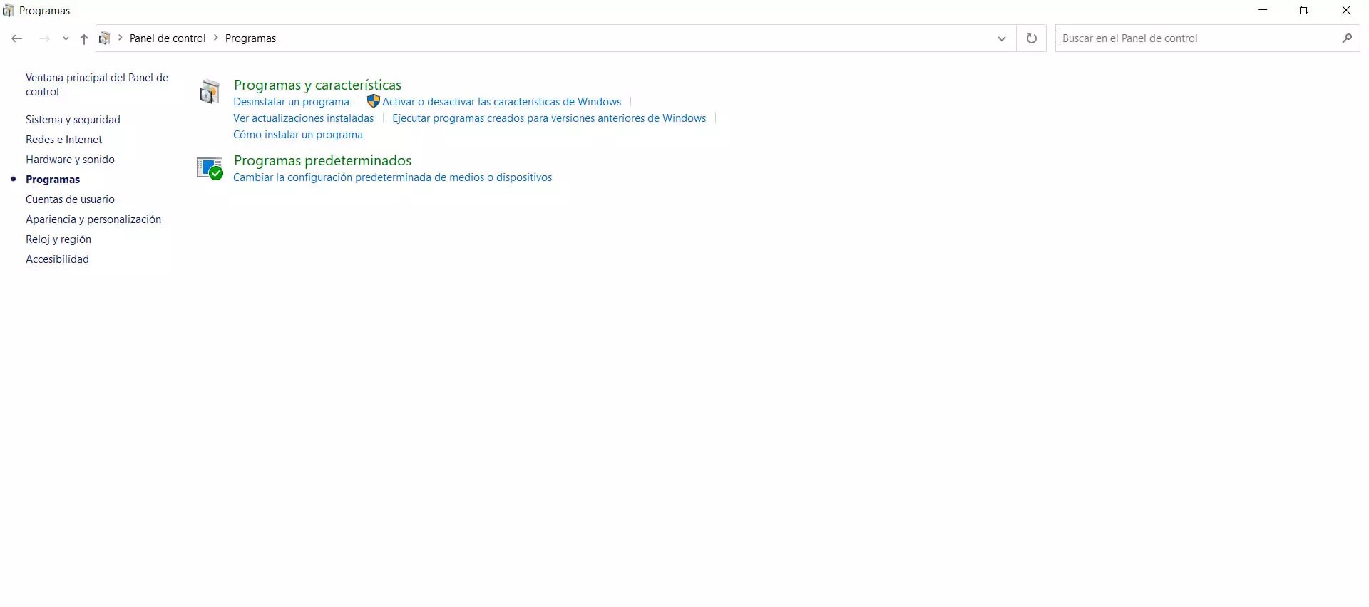 Para habilitarlo tenemos que ir a Inicio, entramos en el Panel de control, vamos a Programas y Activar o desactivar características de Windows.